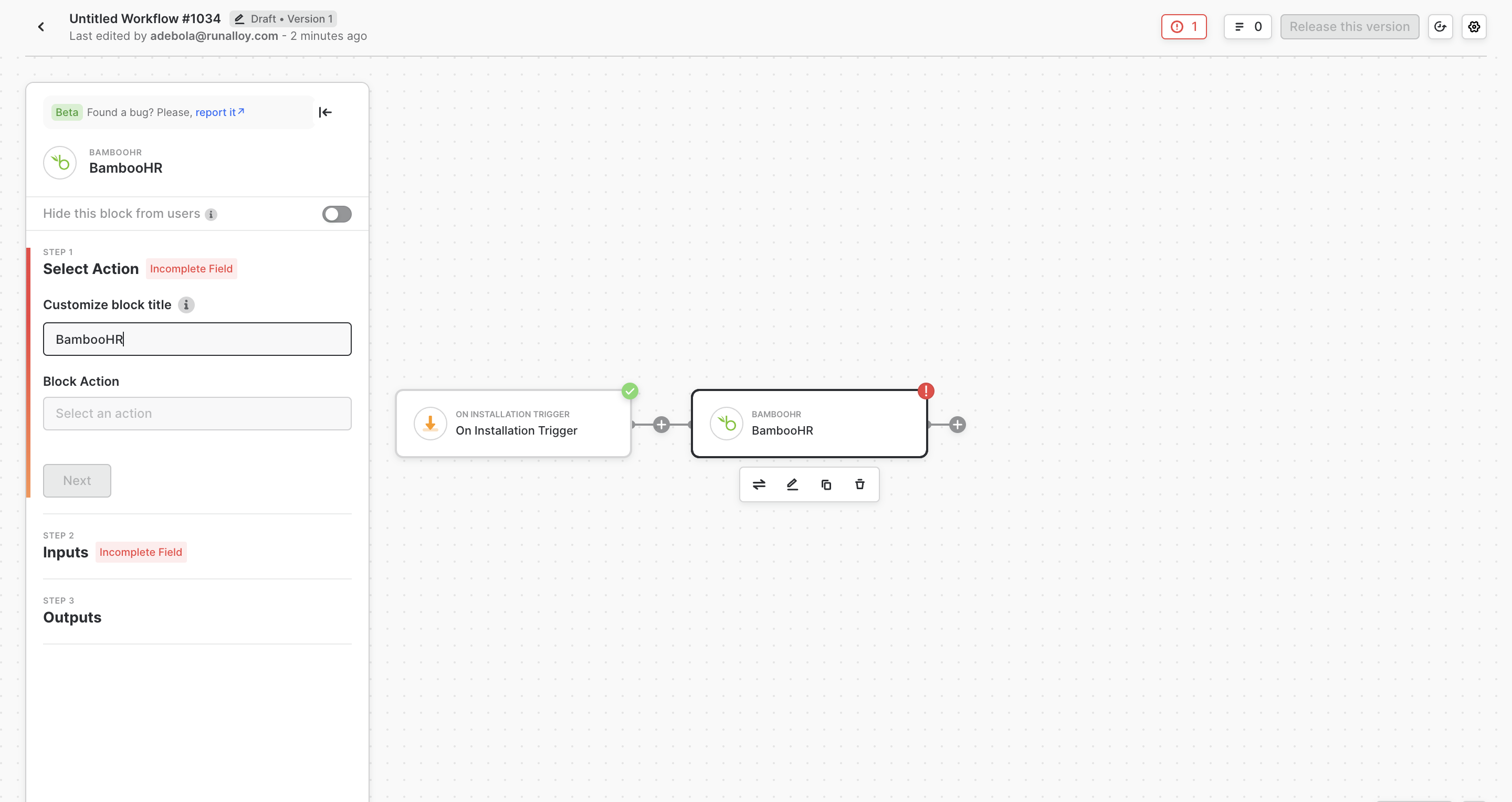 Continue building your workflow as you please. When done, click Release this version in the top right to launch your new BambooHR integration.
