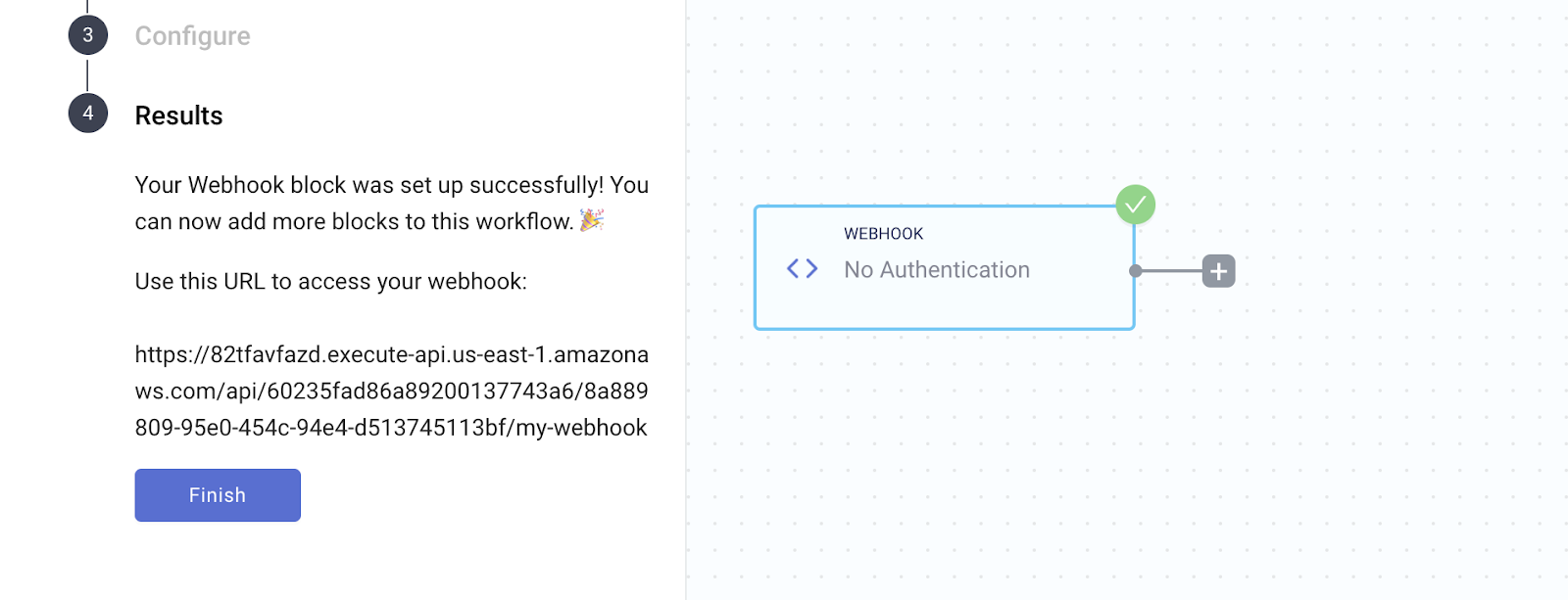 With that, you’ve successfully configured your webhook. You’ll be give a URL below to make requests to and from your webhook. Now you're ready to put this into your Builder.io application.