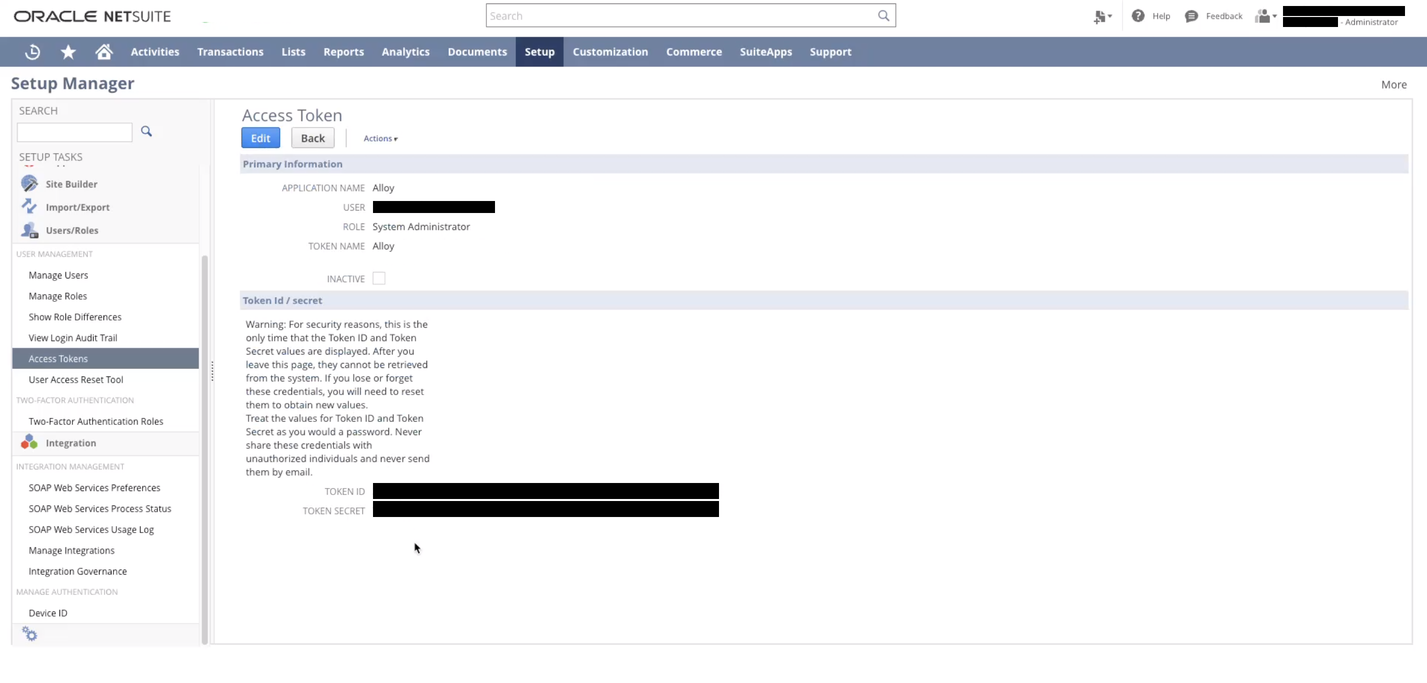 That's a wrap! You'll need these keys and the consumer secret and key from before. Use the keys you obtained from this tutorial when configuring NetSuite with Alloy.