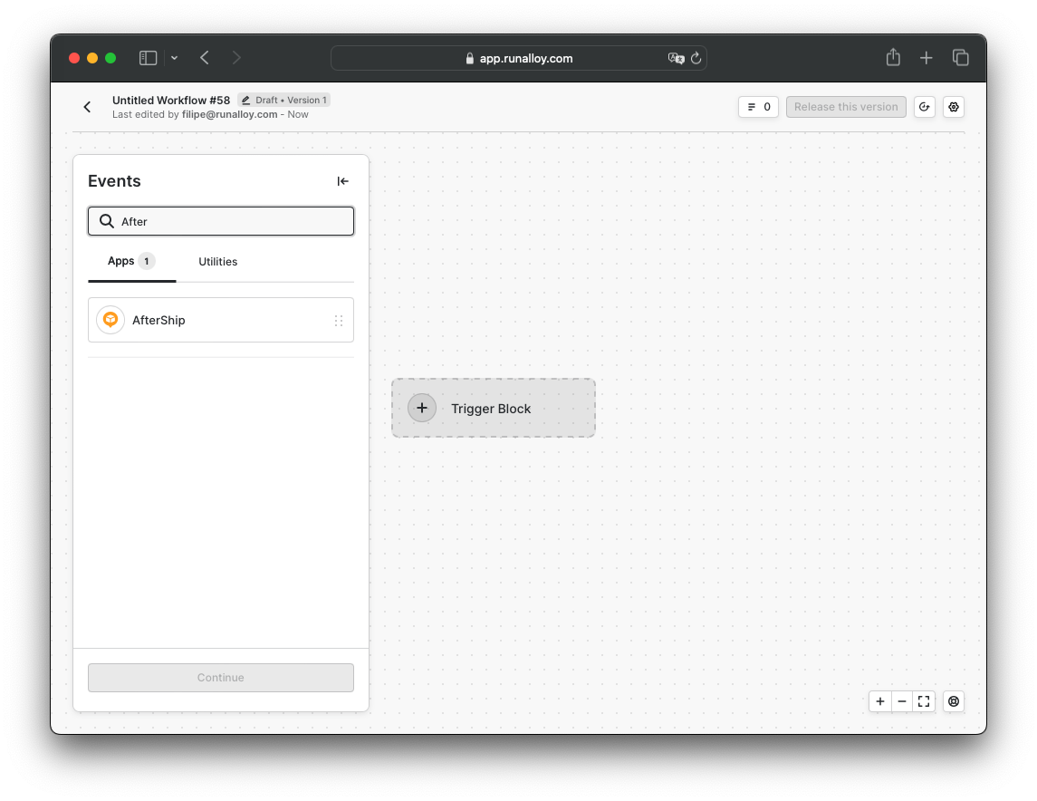 2. Select AfterShip Trigger as the first app in your workflow.