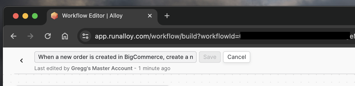 To create a workflow click New Workflow. This will create your first workflow and take you inside the Alloy Workflow Builder.