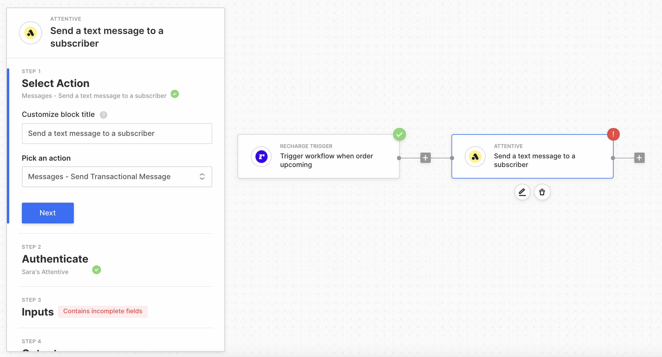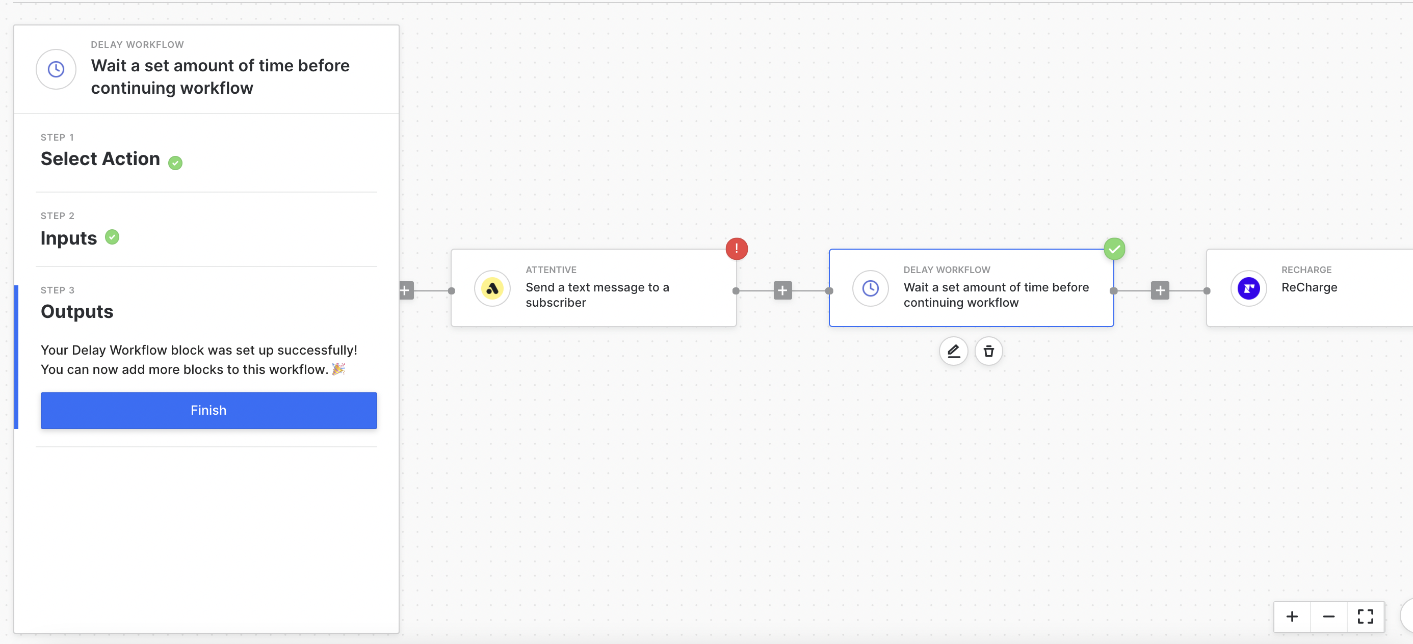You can then add other blocks to take actions depending on the event that occurs in ReCharge