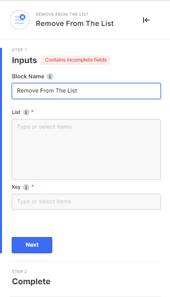 Let's say you are sending an Object to a destination but need to programmatically remove one very important and sensitive piece of information before doing so, enter the Remove From The List block. Insert your Object into the List field, the Key to be removed into the Key field and voila! Never been easier!