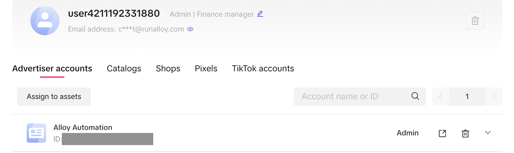 Fill out the required inputs for your selected action. For some actions, you'll need an Advertiser ID. To obtain an Advertiser ID, navigate to the TikTok Ads Dashboard. Go to Users > Members. In the Advertiser accounts tab, you'll see your Business name and your ID.
