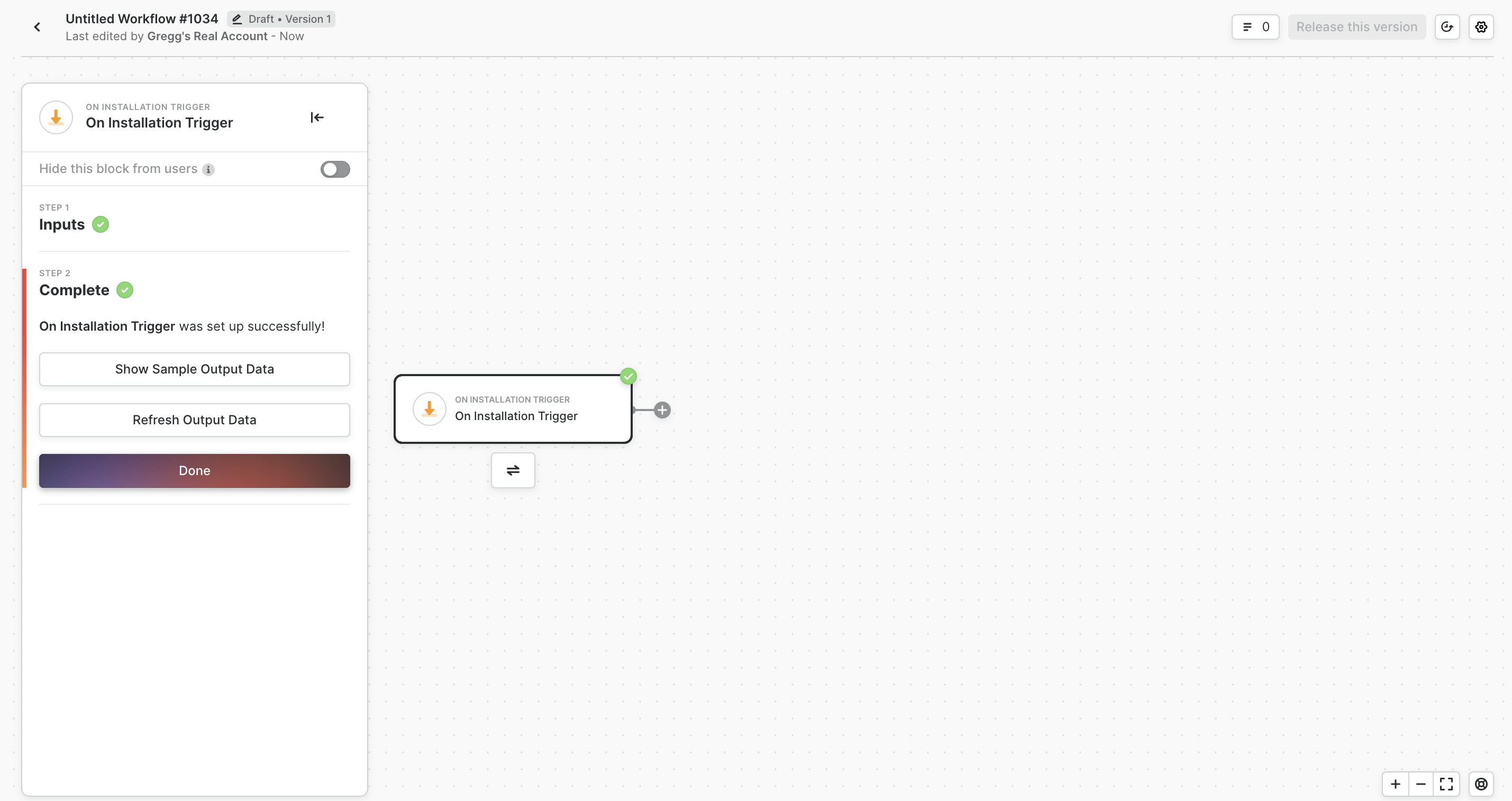 Drag and Drop a trigger into the workflow editor to start building your workflow. You can use any of our 90+ App triggers to get started. In this guide, we're using the installation manager trigger located under the utilities tab.