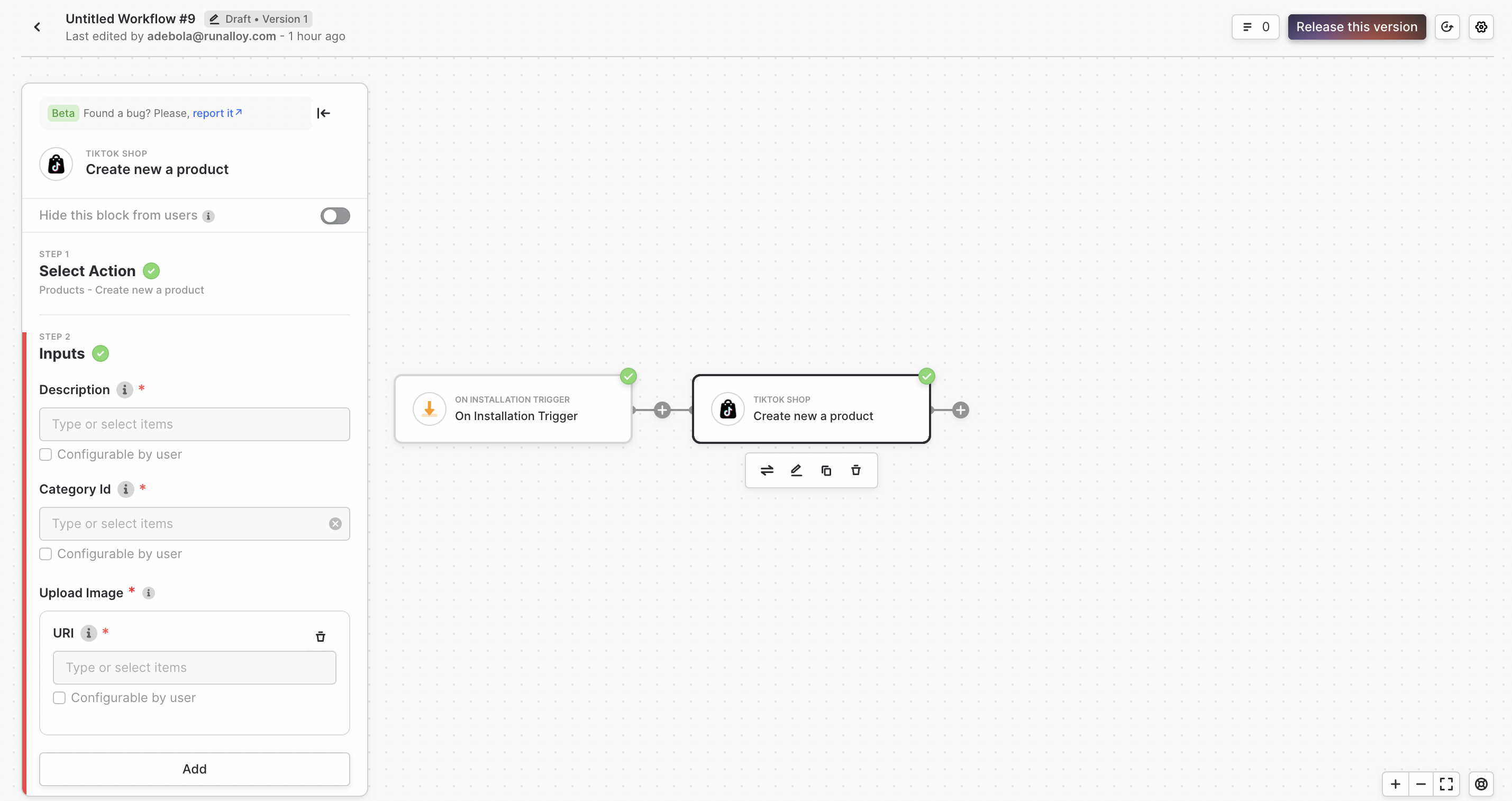 Fill out the required inputs for your selected action. See the TikTok Shop documentation for more information.