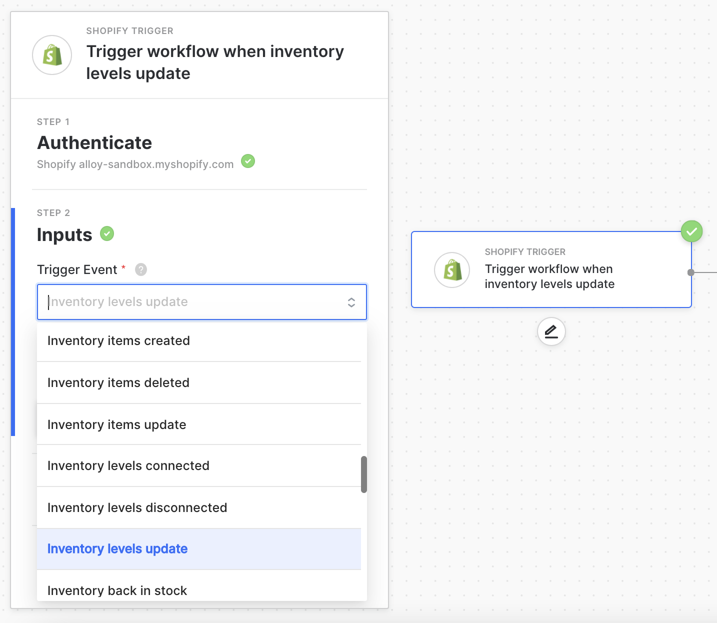 Once you activate the workflow you're all set! It will trigger every time the Shopify event occurs, or whichever event you selected as your trigger