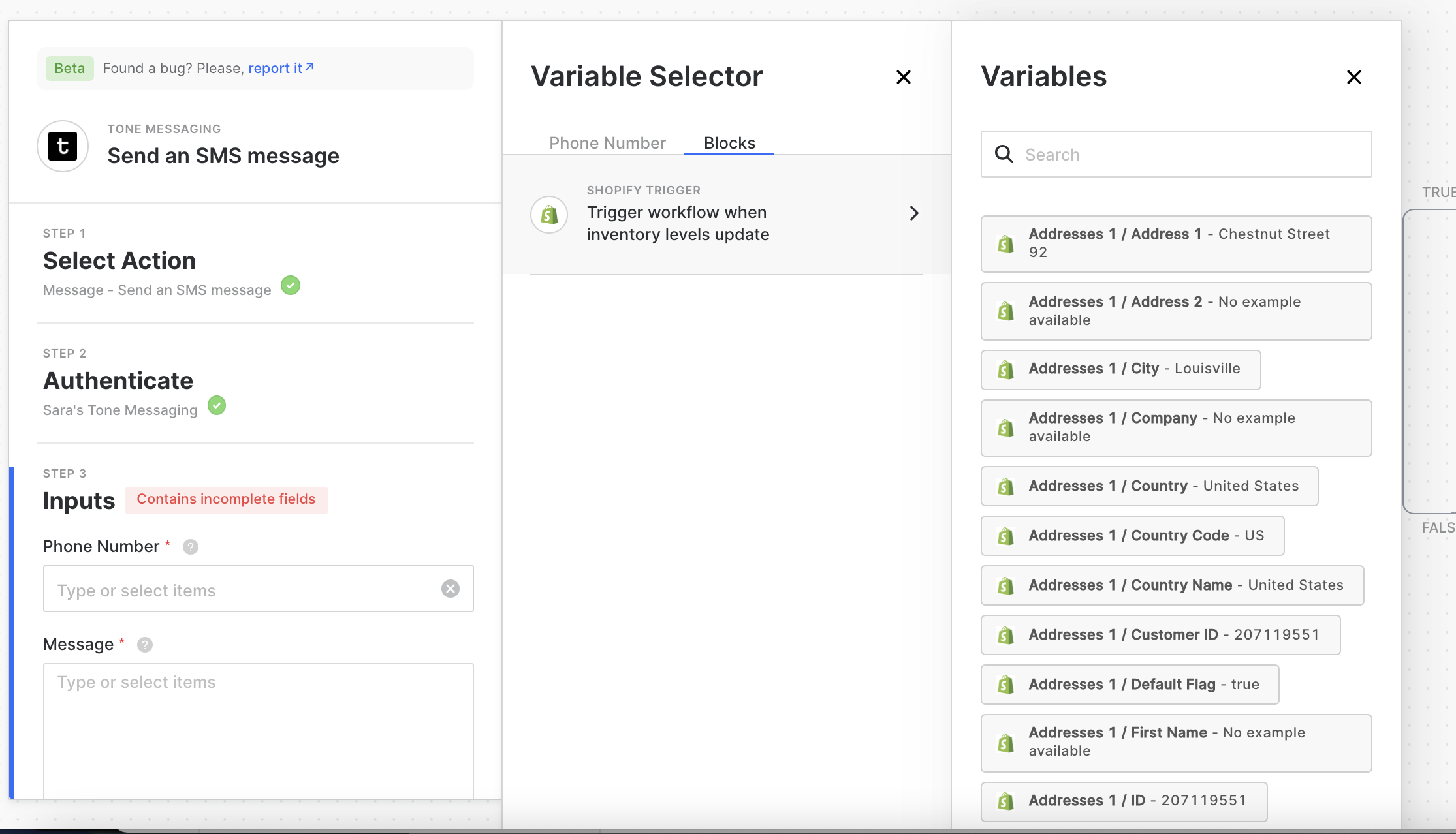 Configure Tone with the dynamic phone number outputted by Shopify and custom text